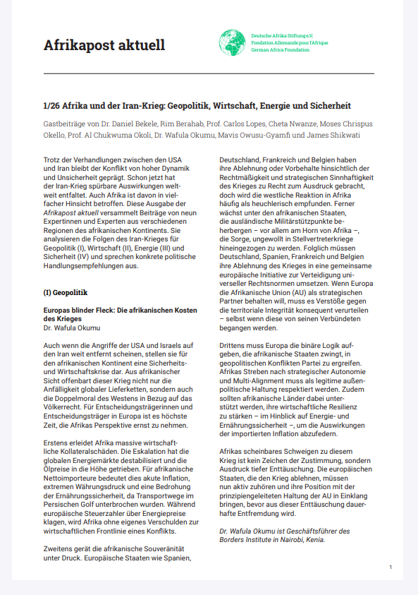 In unserem Wissensarchiv finden Sie Informationen zu afrikapolitisch relevanten Themen, Programmen und Abkommen sowie ausgewählte Fachartikel.